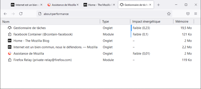 Gestionnaire de tâches – découvrir les onglets et les extensions qui ralentissent Firefoxvendredi 16 juillet 2021