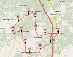 Ce parcours vous emmènera dans la zone des étangs de Sologne. Il emprunte la "route des étangs". Vous pourrez y longer sans doute l’étang le plus long de toute la Sologne. Avec un peu de patience et un doigts de recherche, vous pourrez oberver plus de quarante étangs et peut-être comprendre l’enchaînement des étangs.